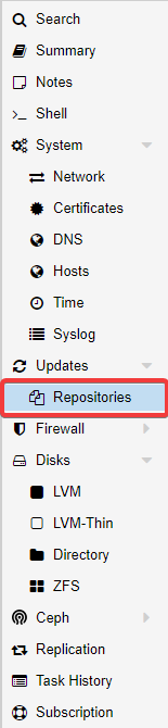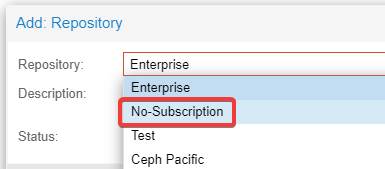 In the Repository dropdown, choose No-Subscription and click Add.