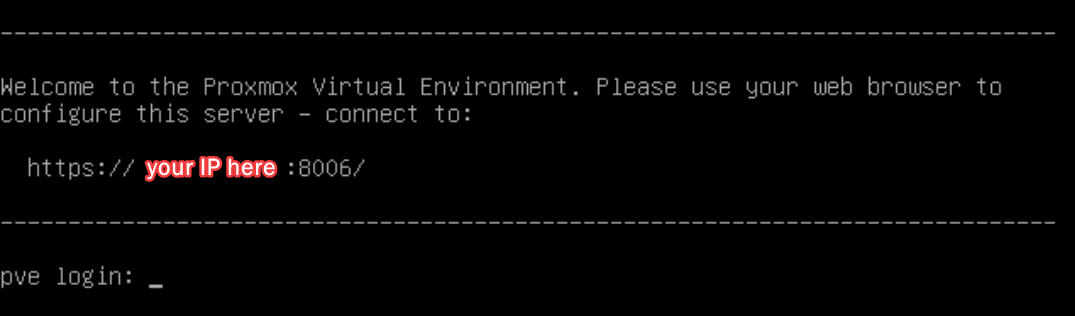 You will be presented with the Proxmox VE Login prompt.
