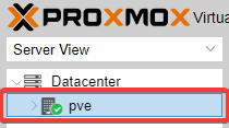 Proxmox starts in the Datacenter view. It differentiates between your "datacenter" and individual servers in the datacenter. First step, select the server you just installed: